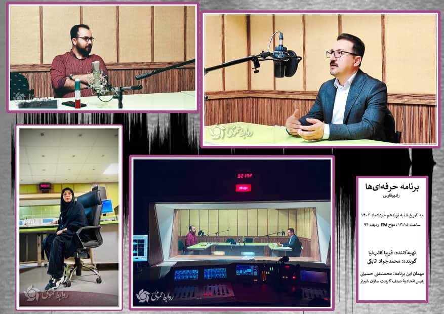 برنامه حرفه ای ها،گفتگوی صمیمانه رادیو فارس با جناب آقای محمدعلی حسینی رئیس اتحادیه صنف کابینت سازان شیراز در خصوص مسائل و مشکلات صنعت کابینت در خرداد 1403